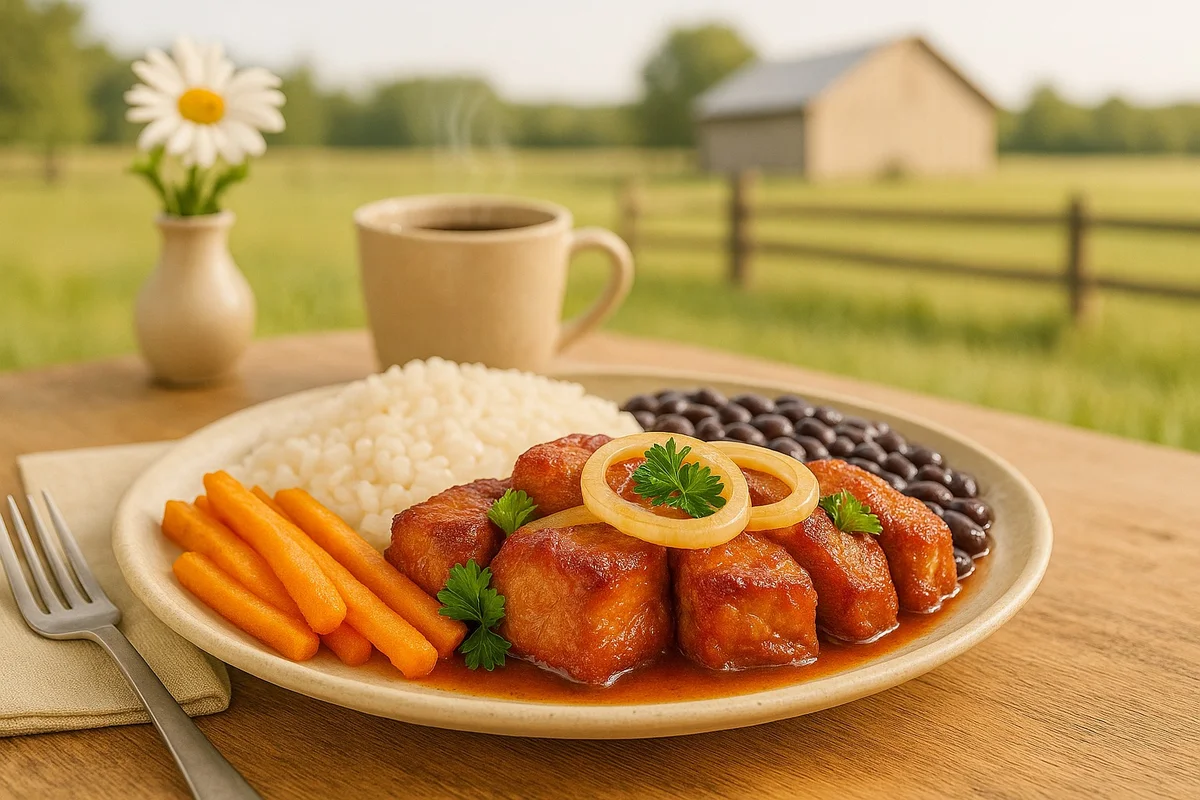 La cocina cubana está llena de sabores caseros que pasan de generación en generación. Hoy te traigo una receta bien criolla que podría salir de la cocina de cualquier abuela cubana un domingo: masas de cerdo fritas jugosas, acompañadas de arroz con frijoles negros y boniato frito. Es un plato completo, reconfortante y lleno de tradición, que reúne los productos de nuestro