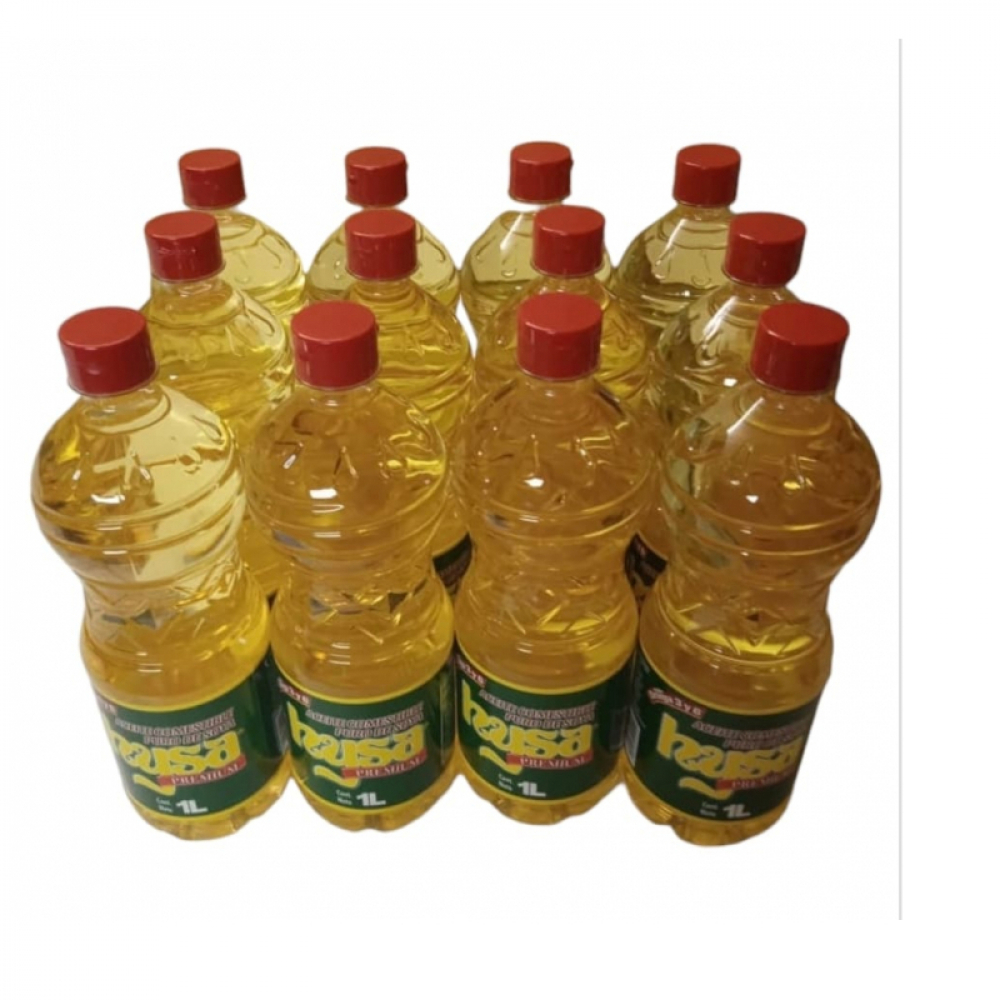 Se entregan 12 botellas de 1 litro de aceite cada una.