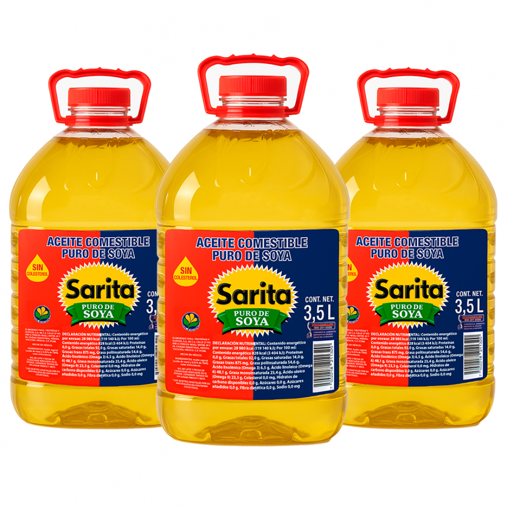 Aceite puro de soya Sarita (3 x 3.5 L)