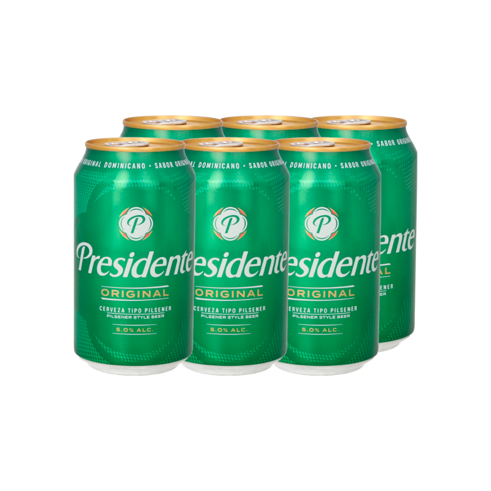 Cerveza de lata Presidente (6 x 355 ml / 12 oz)