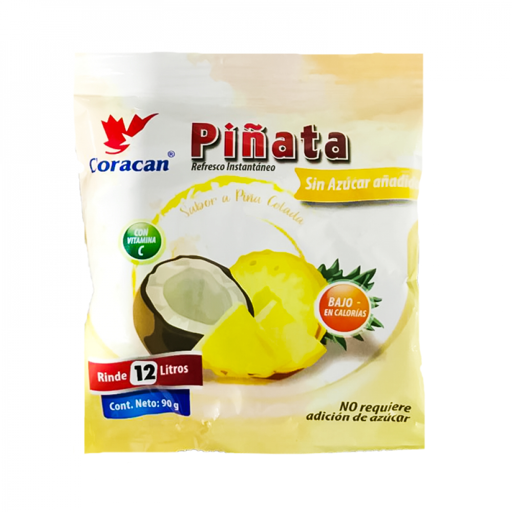 Refresco Instantáneo sabor piña colada sin azúcar Piñata Coracan (90 g / 3.17 oz)