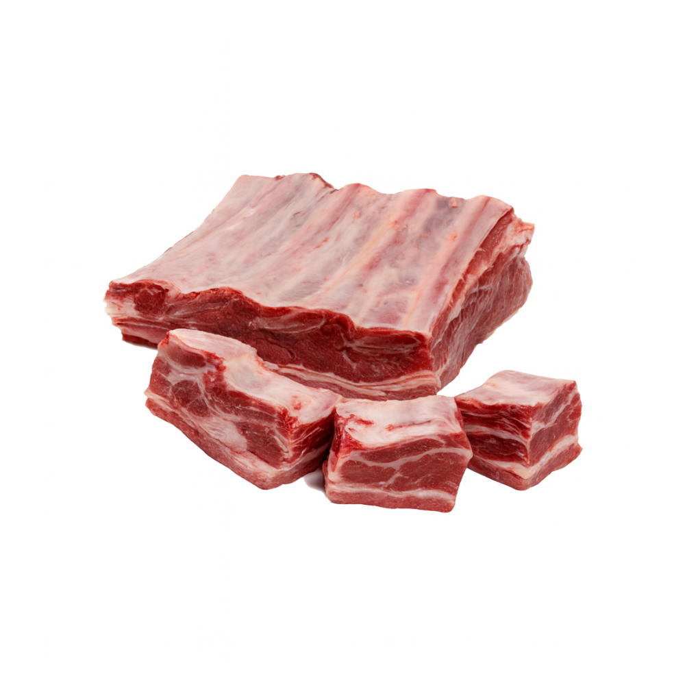 La costilla de res se obtiene de la parte delantera o trasera de la res, dependiendo de la sección específica, y está compuesta por carne magra y hueso, lo que le brinda un sabor único y una textura jugosa.