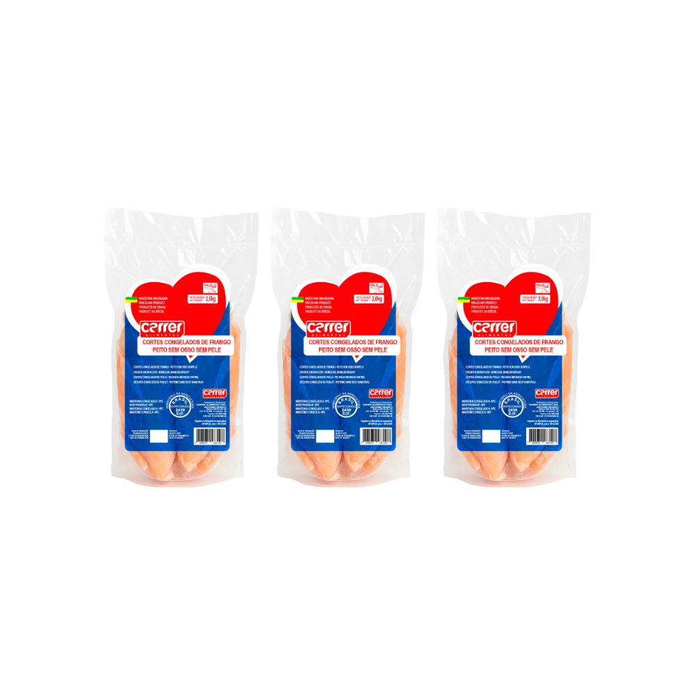 Tres paquetes de 2 kg de pechuga de pollo sin piel y sin hueso.