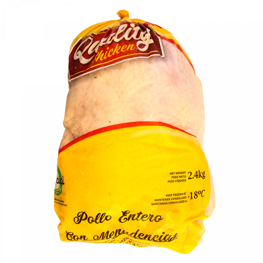 El pollo entero Quality Chicken es una opción de alta calidad, perfecto para asar y preparar diversas recetas.Almacenamiento: Mantener congelado a -18°C, para mantener su frescura y calidad.