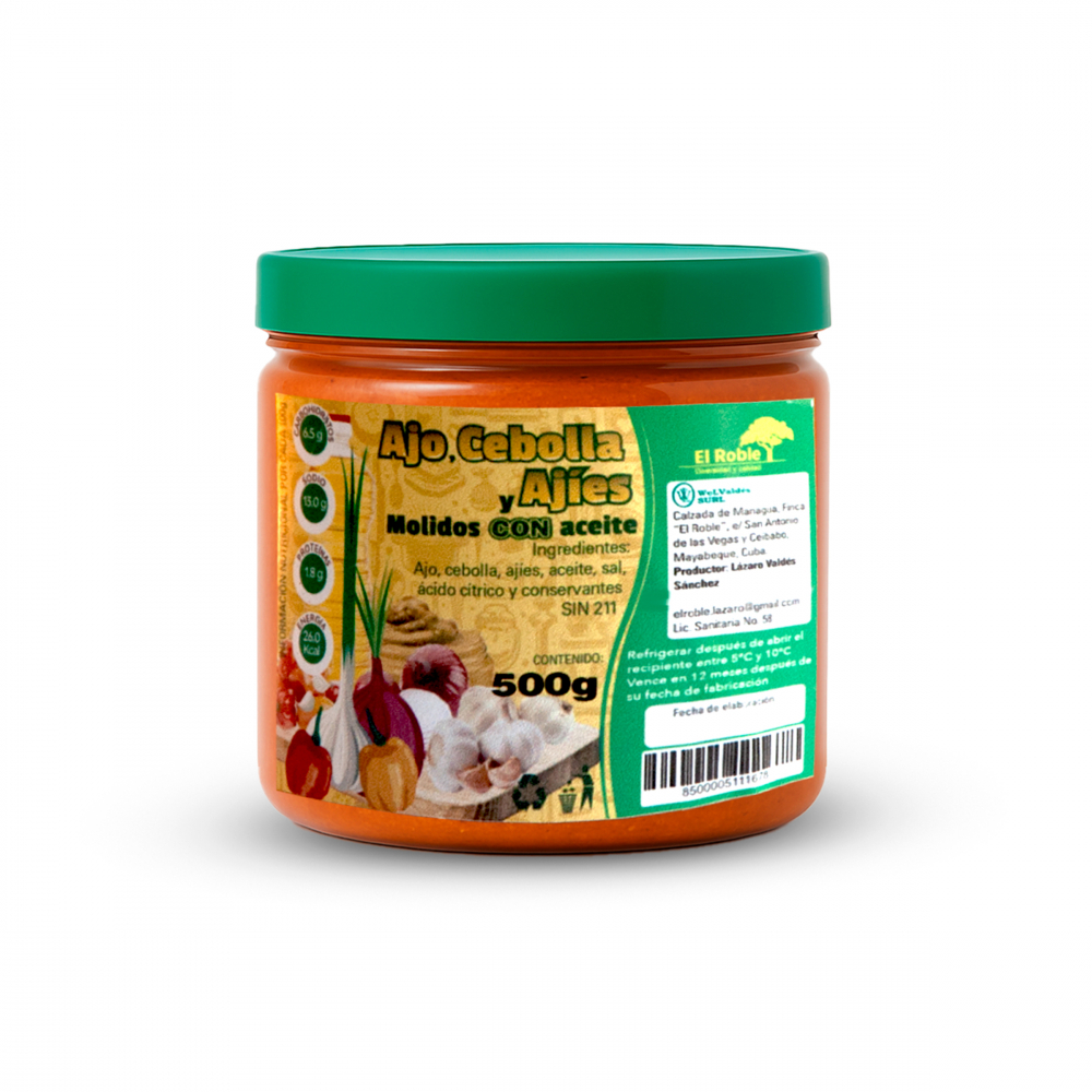 Ajo, cebolla y ajíes molidos en aceite El Roble (500 g / 1.10 lb)