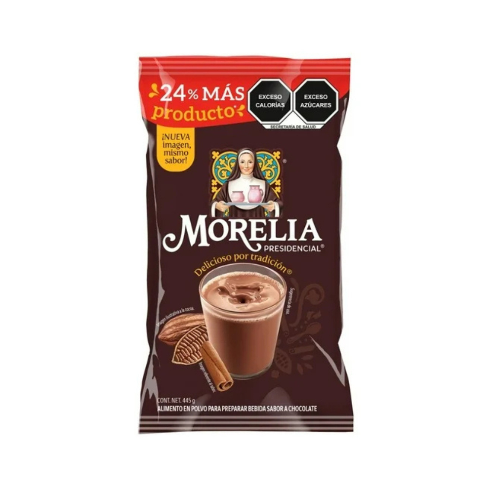 Alimento en polvo para preparar bebidas sabor chocolate Morelia Presidencial (445 g / 15.69 oz)