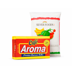 Café espresso premium Aroma (250 g / 8.8 oz) + Azúcar blanca Silver Foods 1 (1 kg / 2.2 lb)