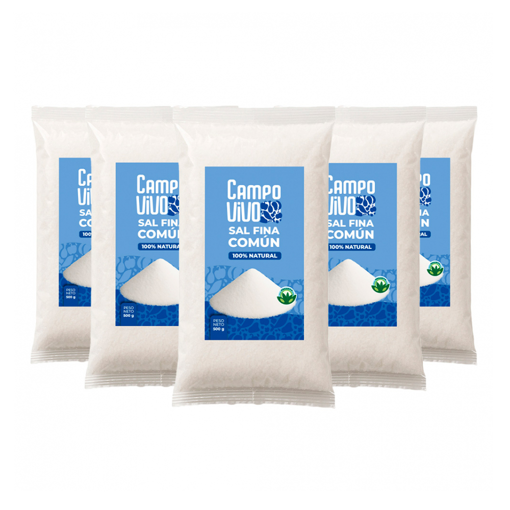 Sal fina común Campo Vivo (5 x 500 g / 1.1 lb)