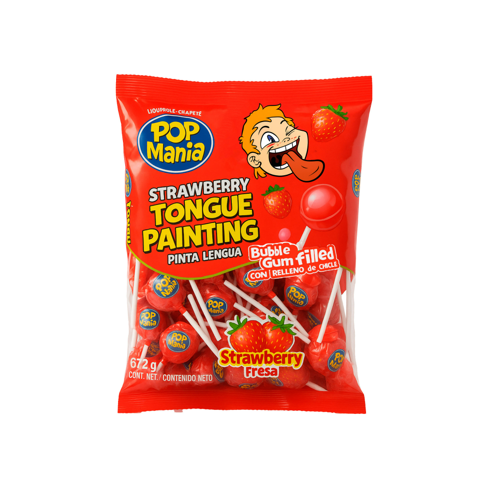 Chupa chupa pinta lengua sabor fresa con relleno de chicle Pop Mania (672 g / 1.48 lb)