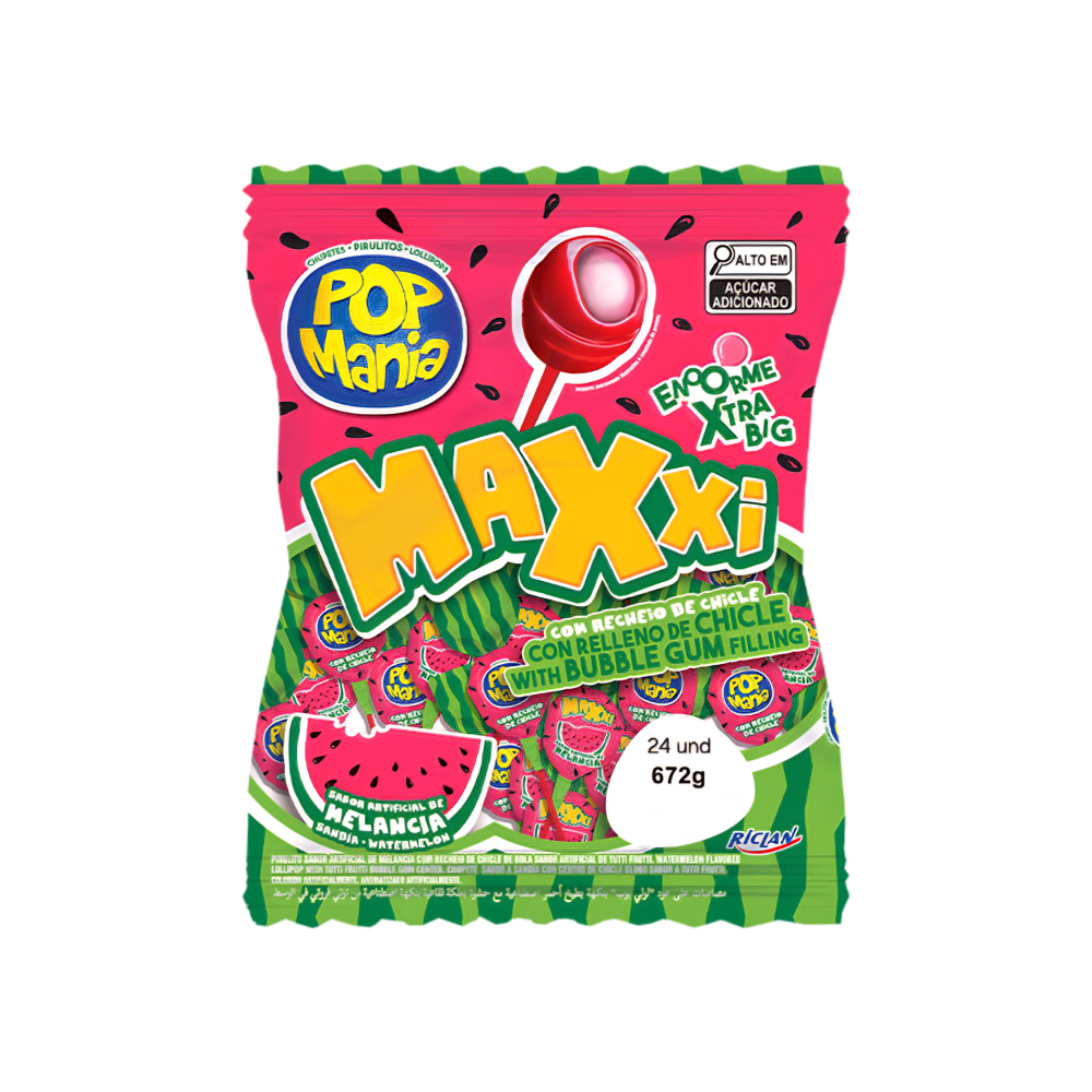 Chupa chupa sabor sandía con relleno de chicle Pop Mania Maxxi (672 g / 1.48 lb)