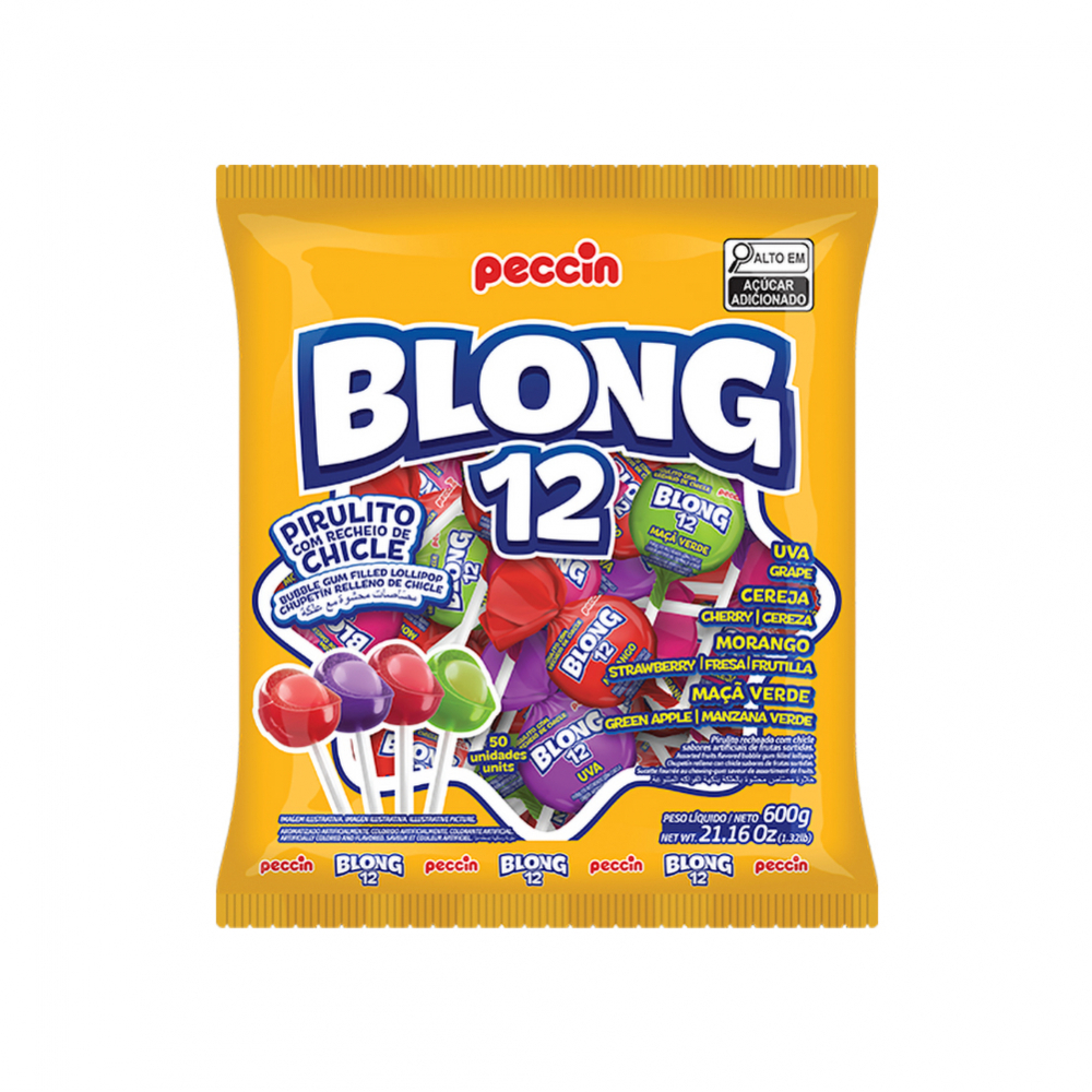 Chupa chups relleno con chicle sabor de frutas surtidas Blong 12 Peccin (600 g / 1.32 lb)