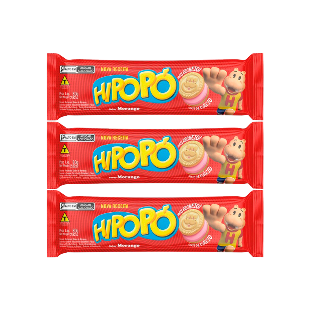 Galletas con relleno sabor fresa Hipopó (3 x 80 g / 2.82 oz)