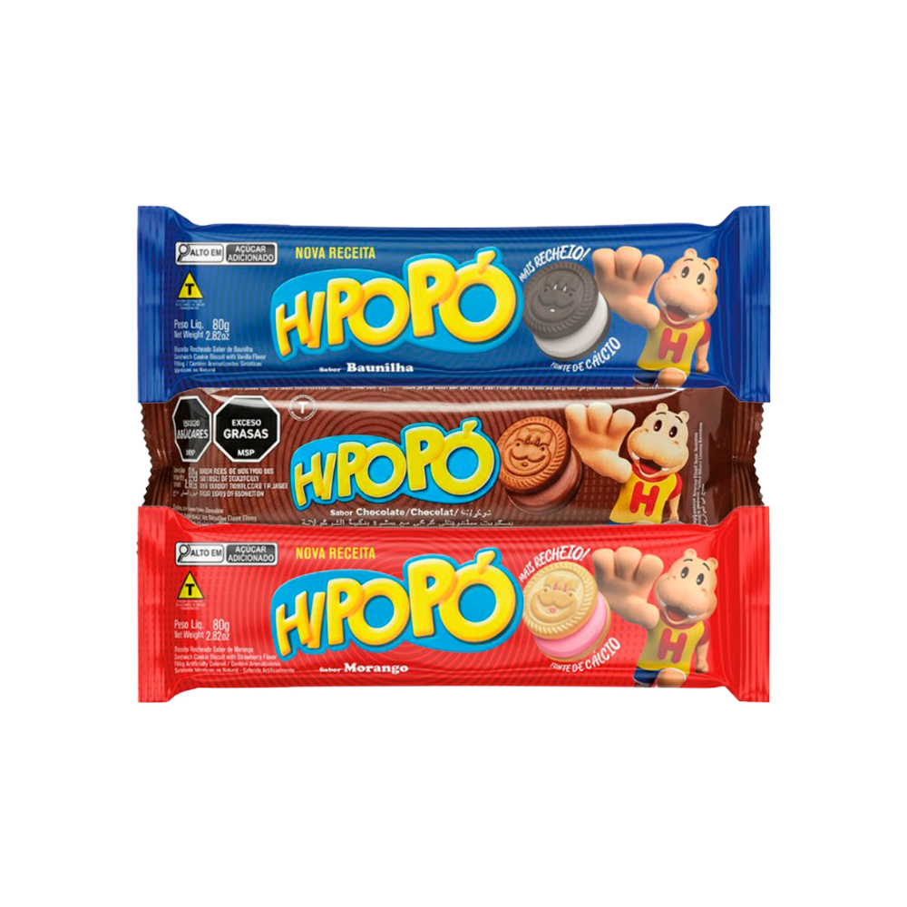 Galletas con relleno sabor vainilla Hipopó (80 g / 2.82 oz) + Galletas con relleno sabor chocolate Hipopó (80 g , 2.82 oz) + Galletas con relleno sabor fresa Hipopó (80 g / 2.82 oz)