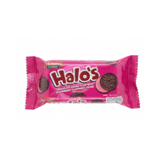 Galletas de chocolate rellenas con crema sabor fresa Victoria Garden Halo’s (30 g / 1.05 oz)