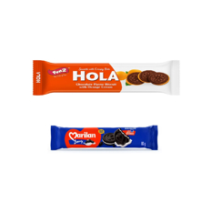 Galletas de chocolate rellenas de naranja Hola (70 g / 2.46 oz) + Galleta dulce sabor chocolate con relleno sabor a vainilla Marilan (80 g / 2,82 oz)