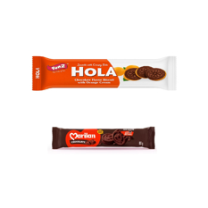 Galletas de chocolate rellenas de naranja Hola (70 g / 2.46 oz) + Galleta dulce sabor chocolate con relleno sabor a chocolate Marilan (80 g / 2,82 oz)
