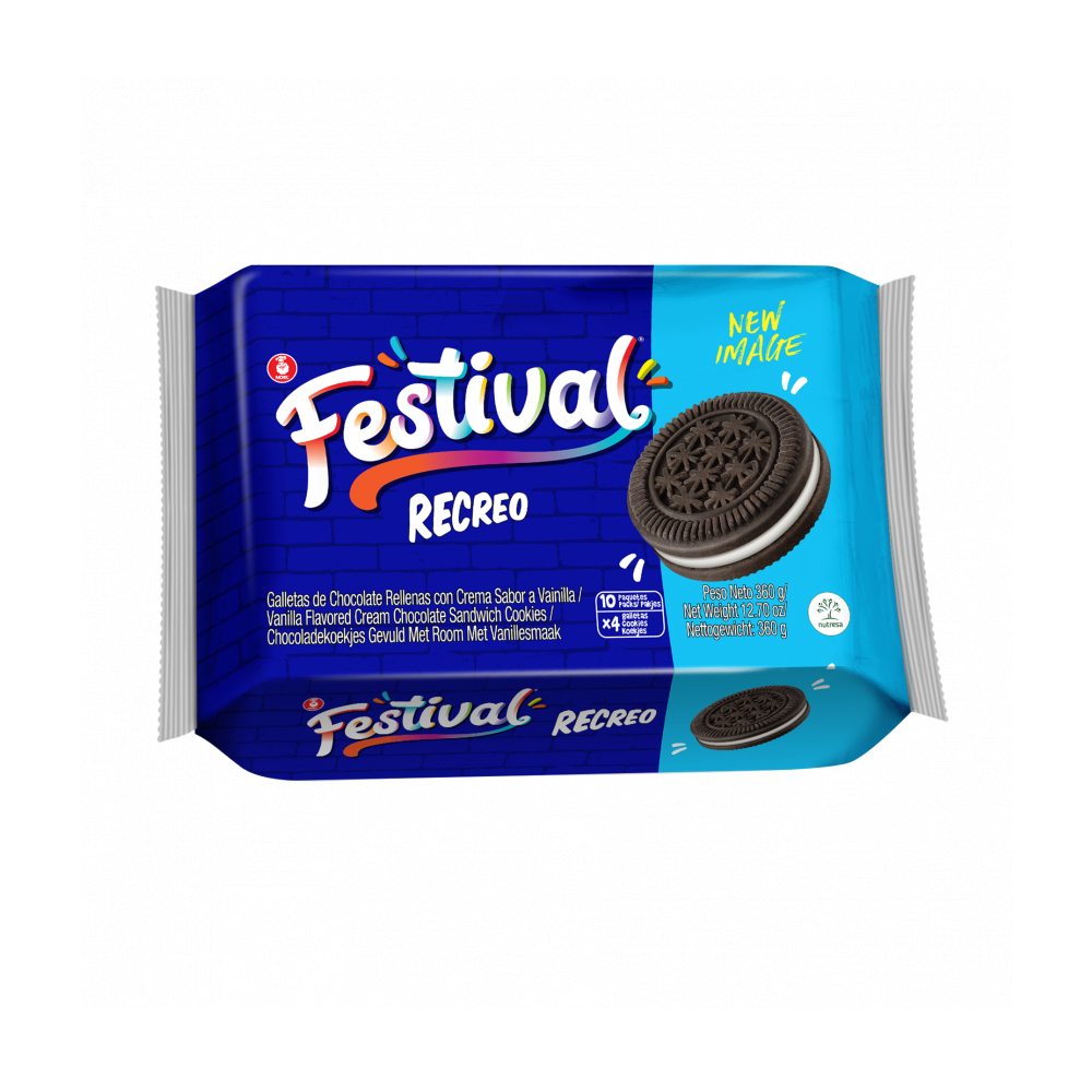Galletas dulces de chocolate rellenas con crema sabor vainilla Recreo Festival (360 g / 12.7 oz)