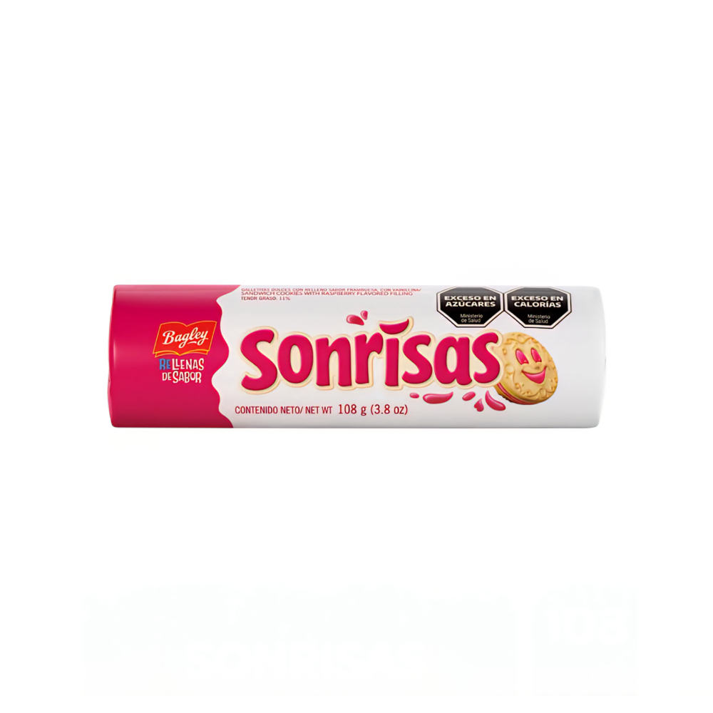 Galletas dulces de vainilla con relleno sabor frambuesa Sonrisas Bagley (108 g / 3.80 oz)