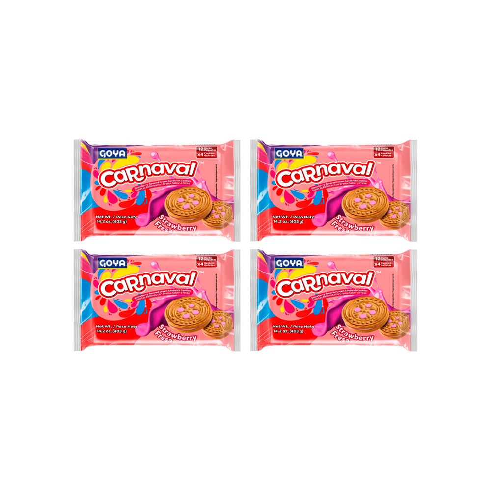 Galletas rellenas con crema sabor a fresa Carnaval Goya (4 x 403 g/ 14.2 oz)