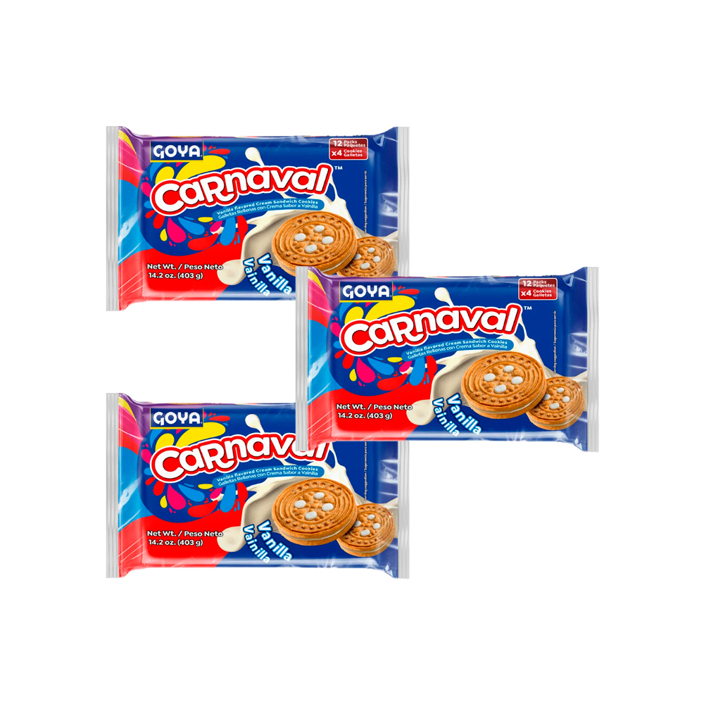 Galletas rellenas con crema sabor a vainilla Carnaval Goya (3 x 403 g/ 14.2 oz)