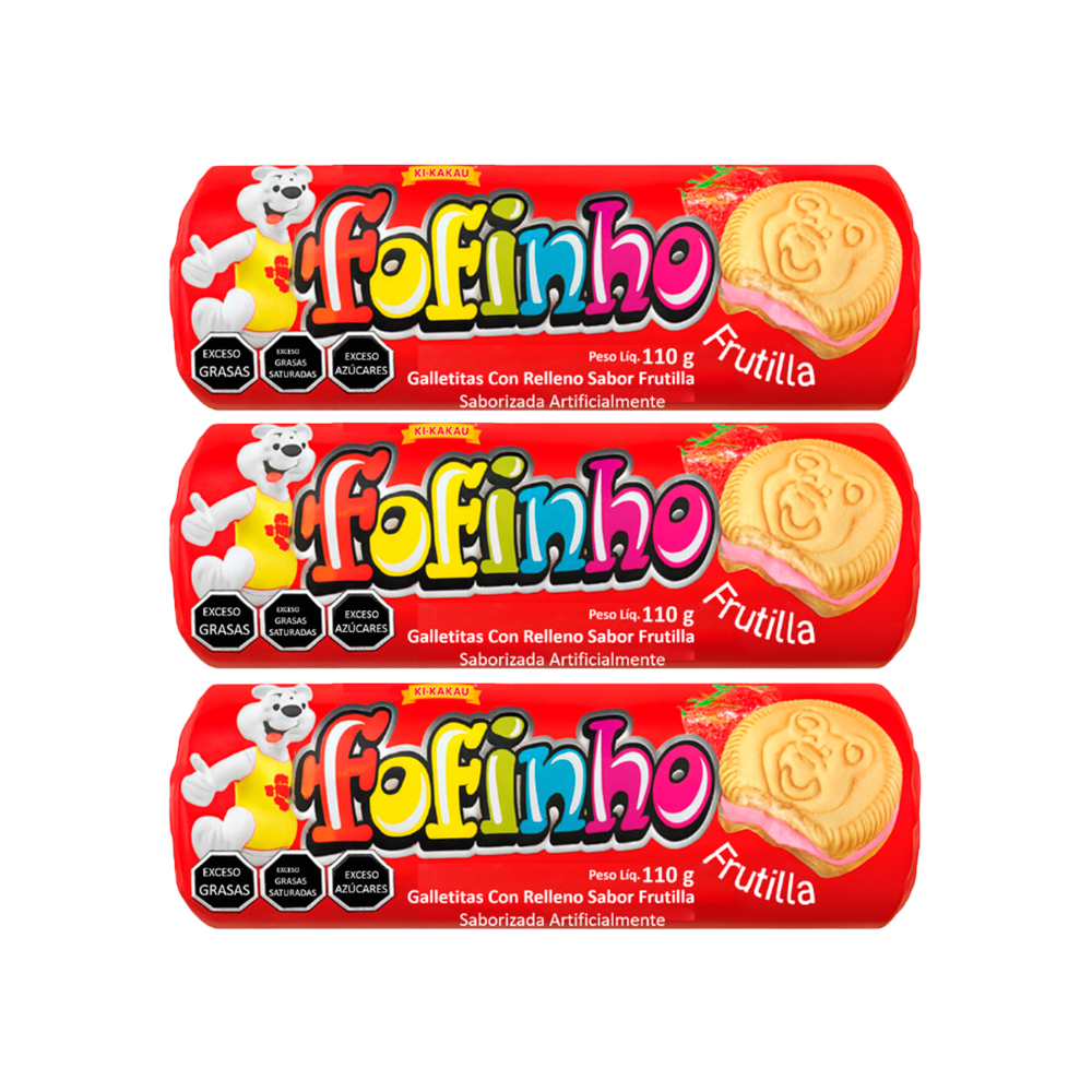 Galletas rellenas sabor frutilla Fofinho (3 x 110 g / 3.9 oz)