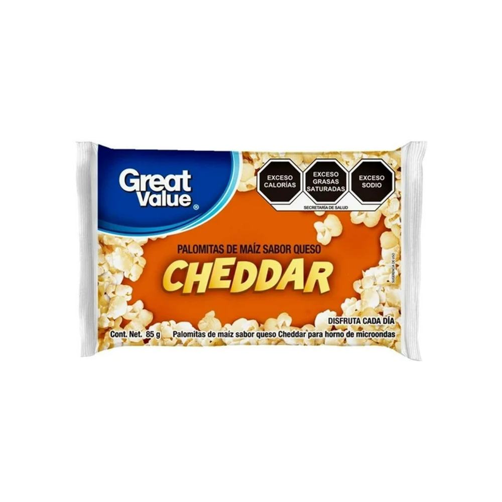 Palomitas de maiz sabor queso cheddar para horno de microondas Great Value (85 g / 3 oz)