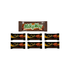 Pastel de chocolate con leche relleno de crema de cacao Dulce (6 x 30 g / 1.06 oz) + Barras de chocolate con leche tamaño divertido Milky Way (2.66 oz / 75 g)