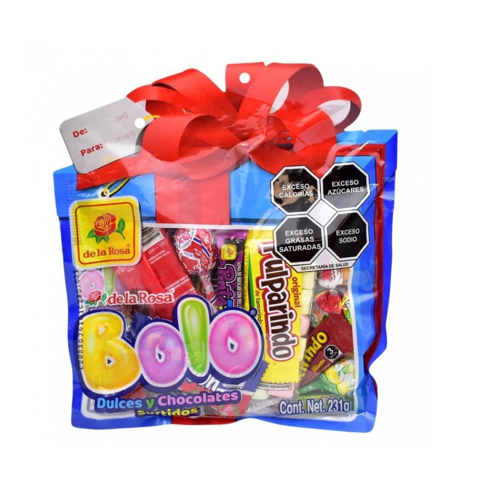 - Disfruta de un delicioso bombón cubierto de chocolate, de un picosito pulparindo, de un caramelo suave aciduladito, una paleta de cereza o de una gomita espolvoreada en azúcar, la bolsa Bolo trae muchos más dulces que te encantarán.