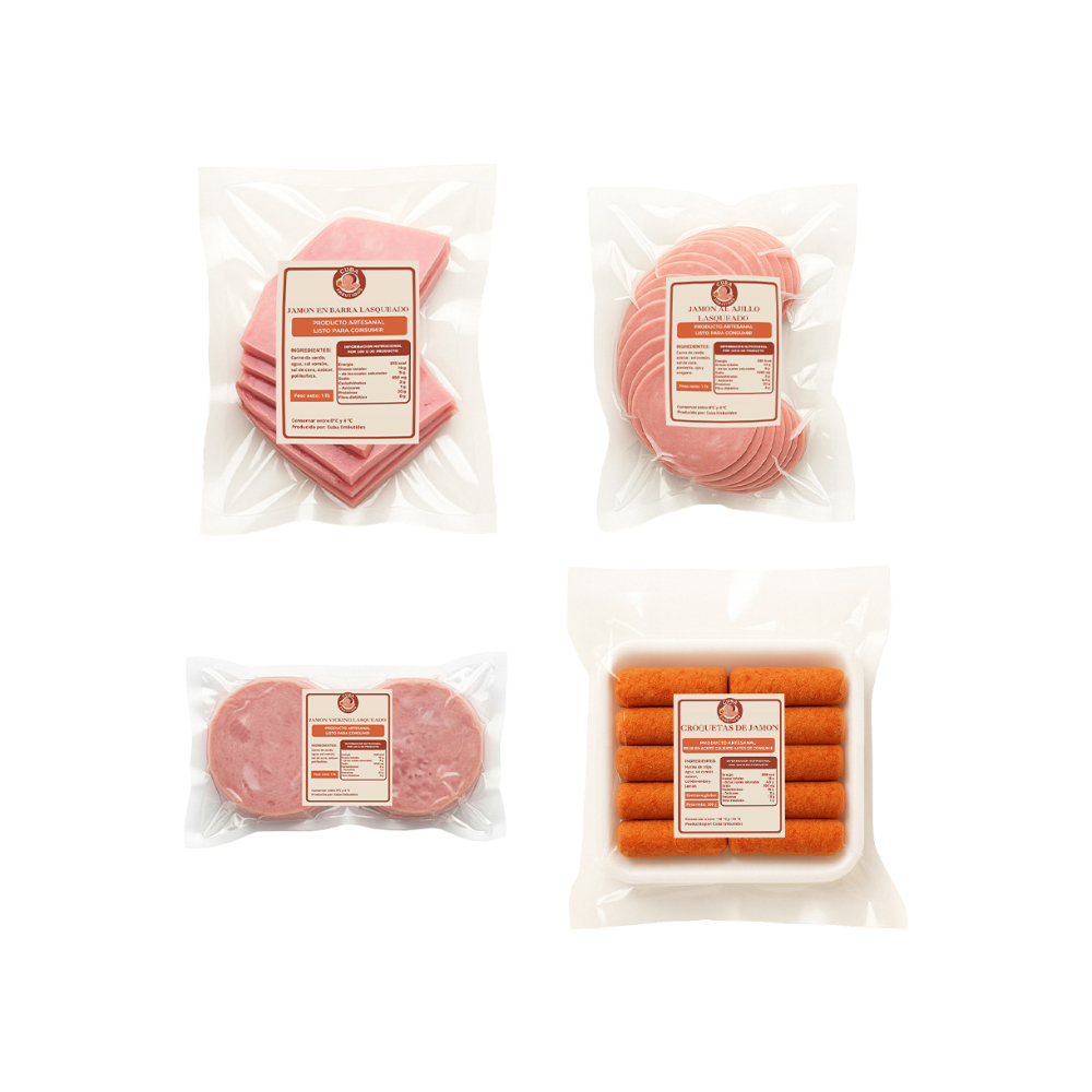 Jamón vicky lasqueado + Jamón en barra lasqueado + Jamón al ajillo lasqueado + Croquetas de jamón