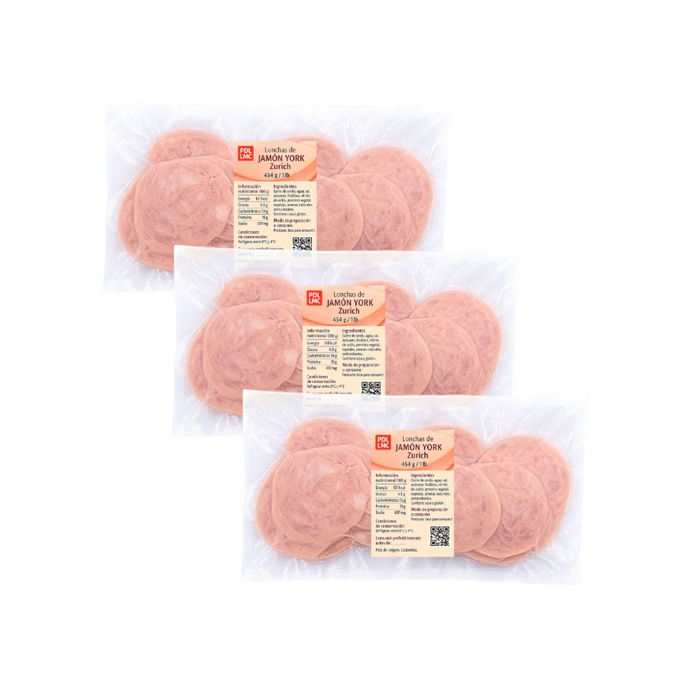 Lonchas de Jamón York Zurich (3 x 454 g / 1 lb)