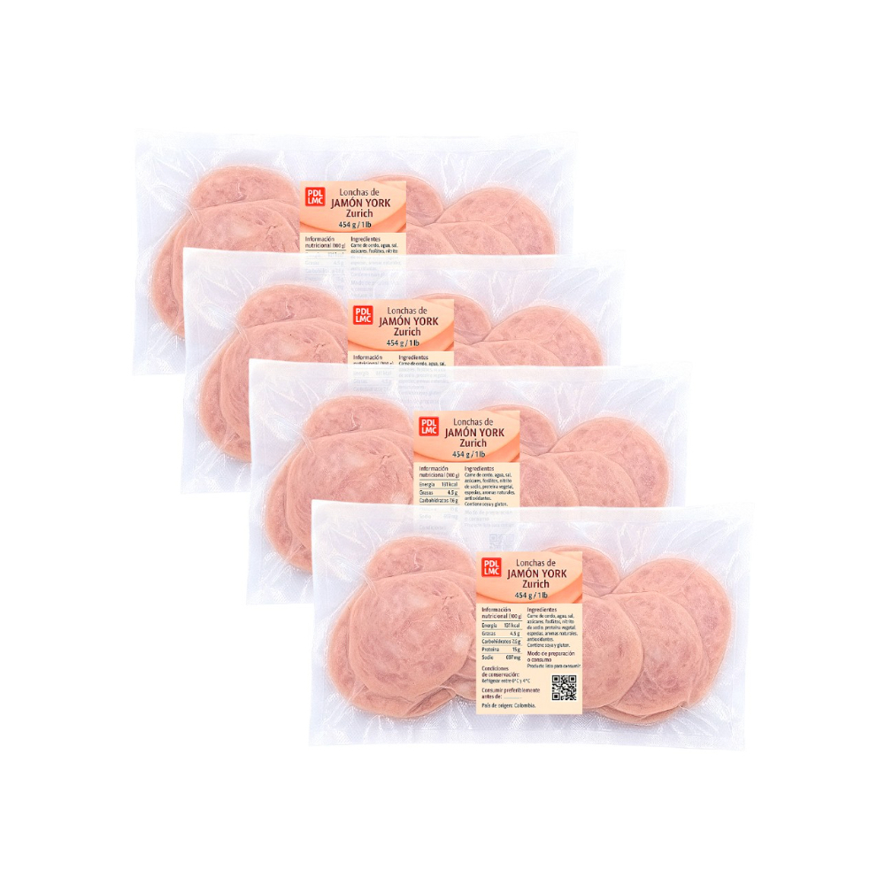 Lonchas de Jamón York Zurich (4 x 454 g / 1 lb)