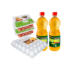 Huevo blanco importado + Aceite puro de soya + Salchichas de pollo