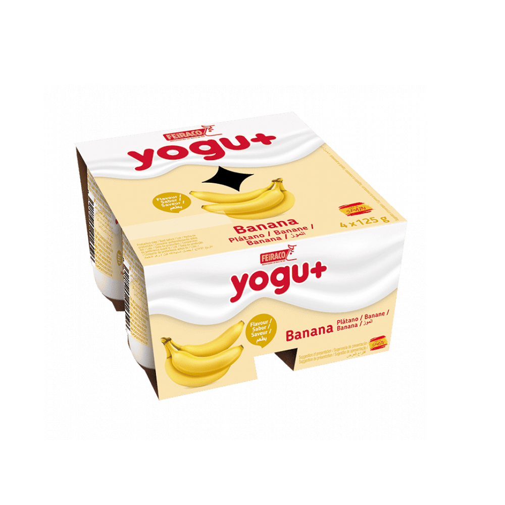 Yogurt pasteurizado sabor plátano Yogu+ Feiraco (4 x 125 g / 4.41 oz)
