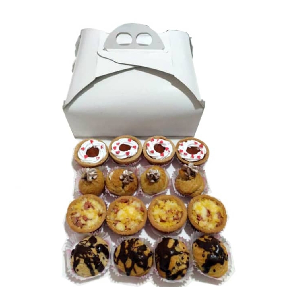 Son 16 variados dulces y salados en una caja, donde se da la posibilidad de compartir tartaletas de guayaba, leonesas y canapé de jamón y queso. Hecho a base huevo, azúcar, licor de vainilla, Mantequilla, frutas, crema de leche, embutidos y grajea en forma de corazón. Son 16 Unidades en total.