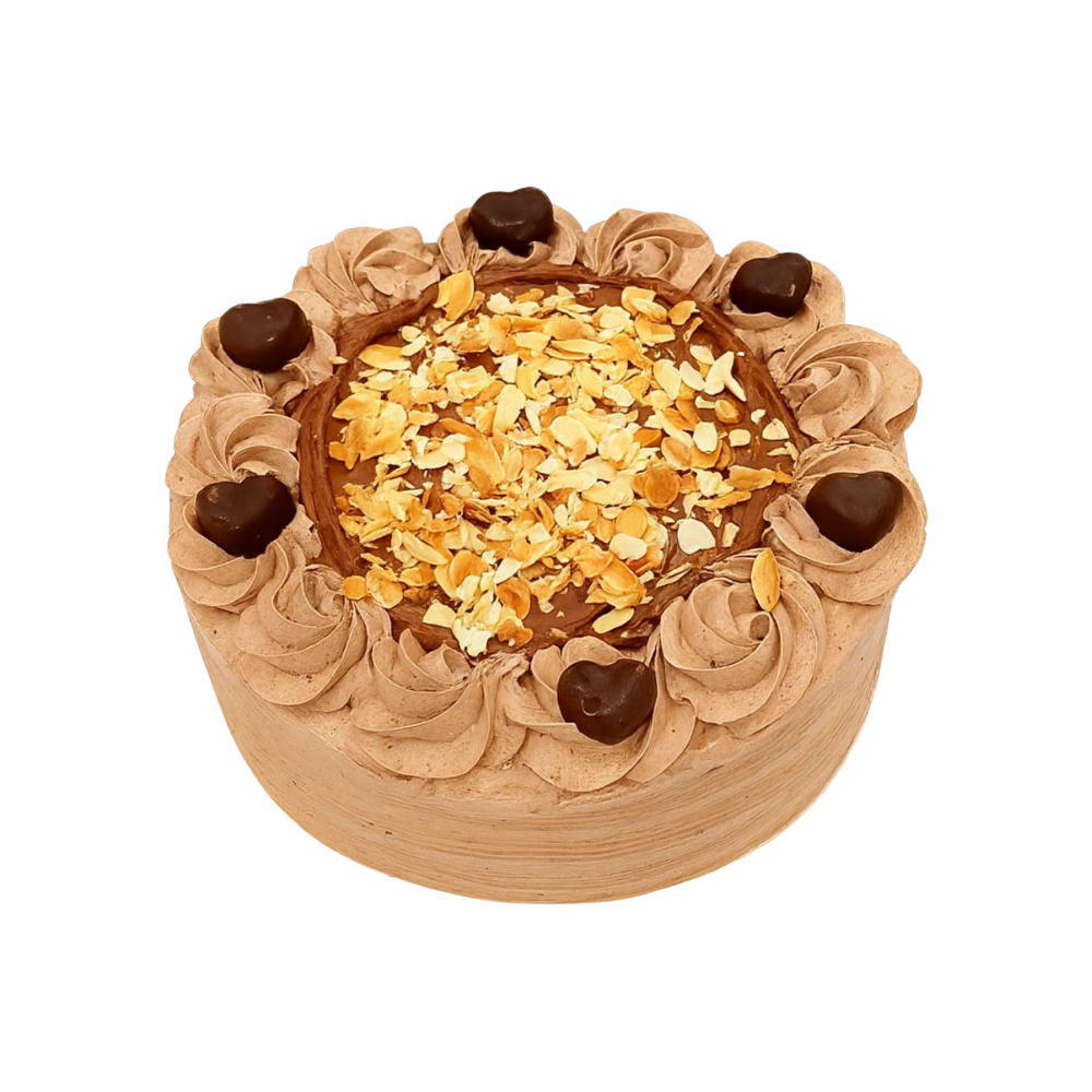 Ingredientes Harina, maicena, azúcar, huevo, cobertura de chocolate, crema de chocolate, nutella, almendras laminadas