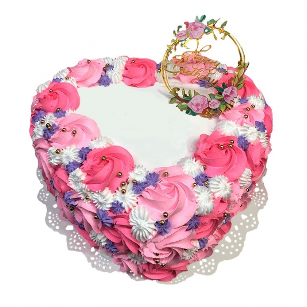 Cake de corazón con rosas de nata Happy Birthday y panetela de chocolate Deyi&Sweet (12 personas)