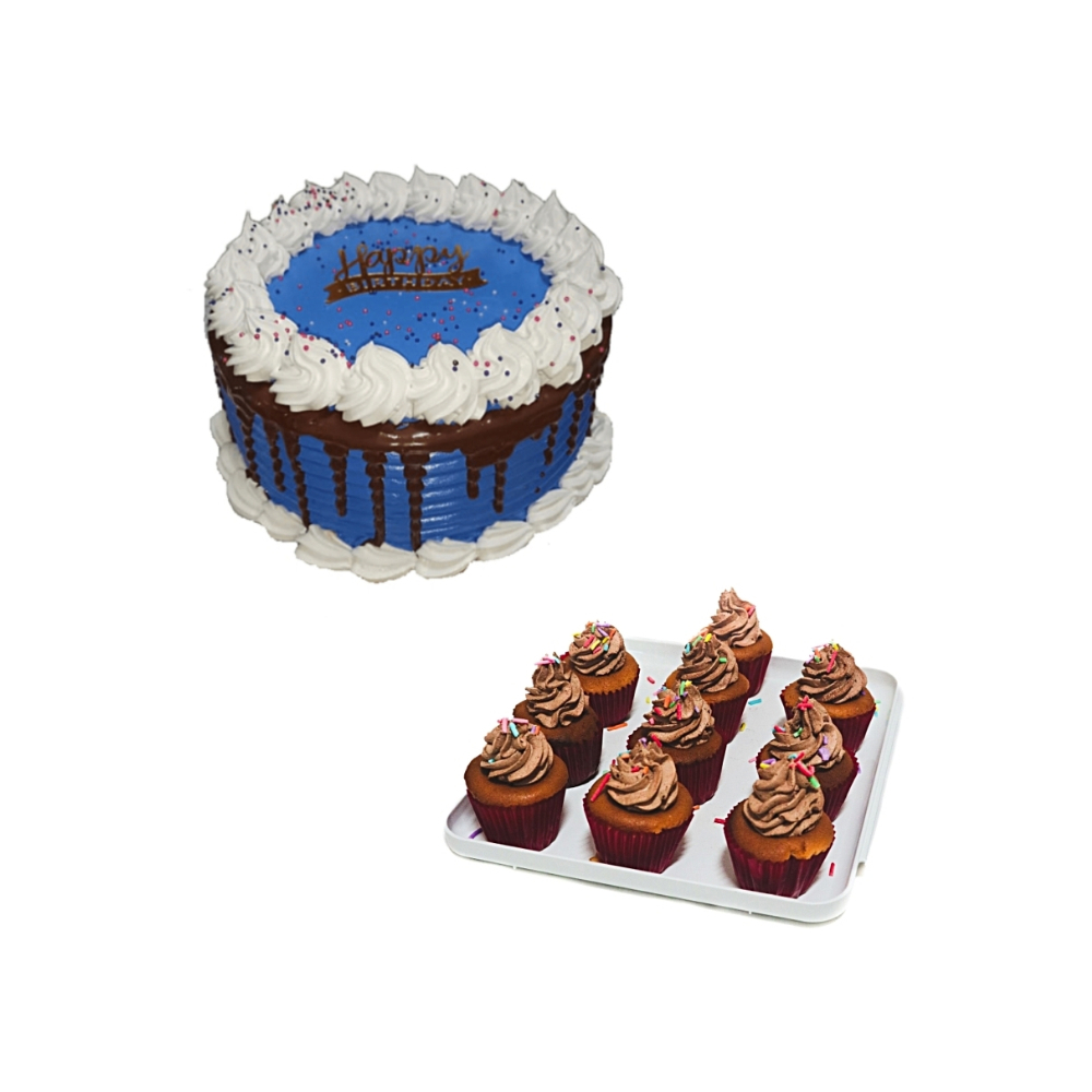 Cake de merengue chocolate azul (6 comensales) + cupcakes