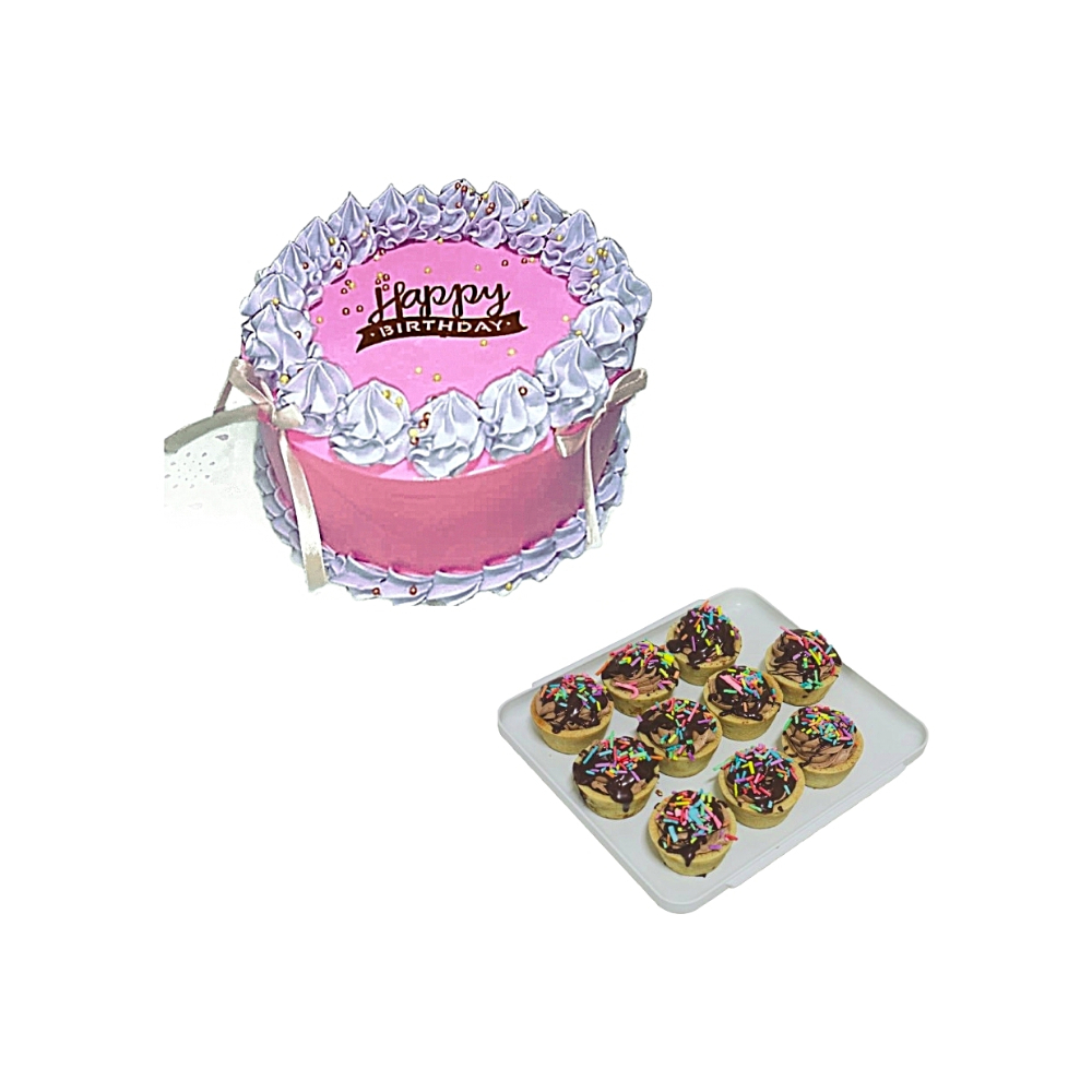 Cake de merengue rosa con lazos (6 comensales) + tartaletas