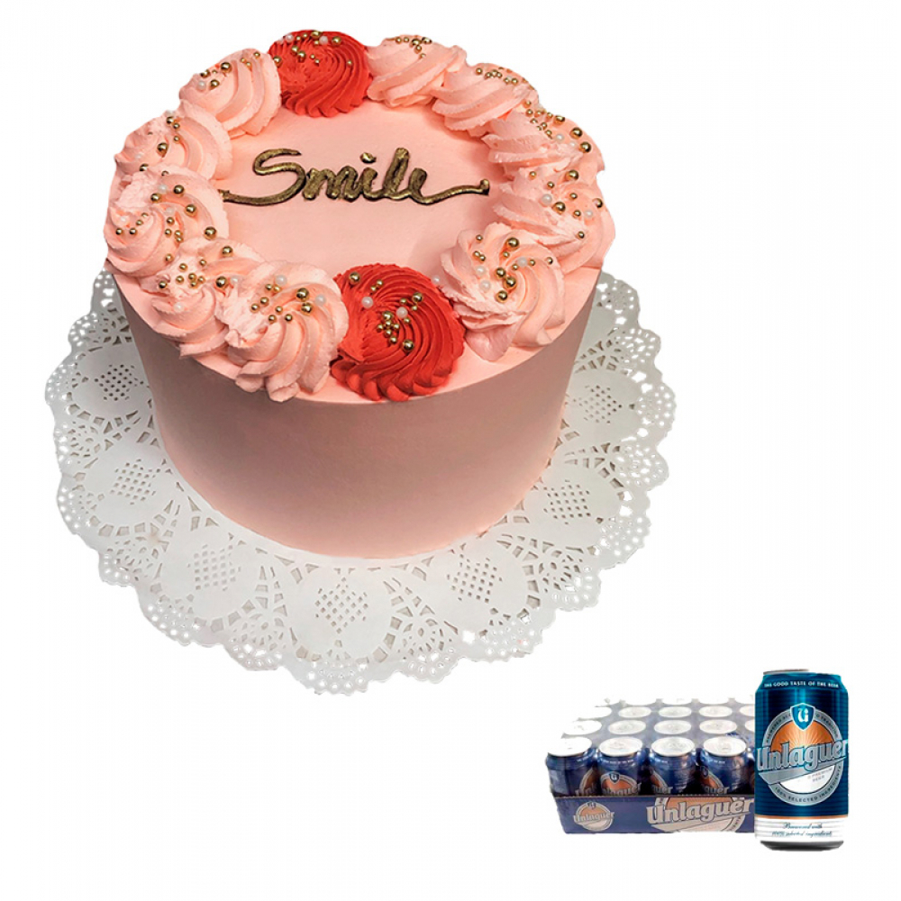 Cake de vainilla con nata color naranja + Cerveza Unlaguer