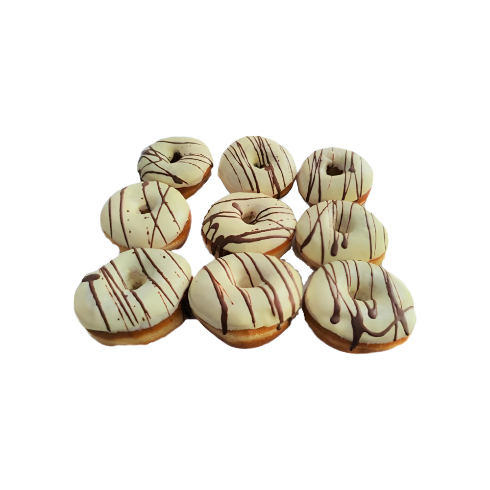 (9 ) Donas decoradas con cobertura de chocolate blanco.