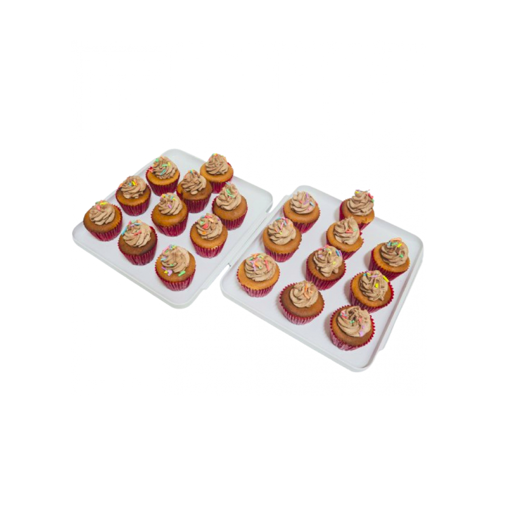 20 unidades de cupcakes decorados con nata y grajeas.