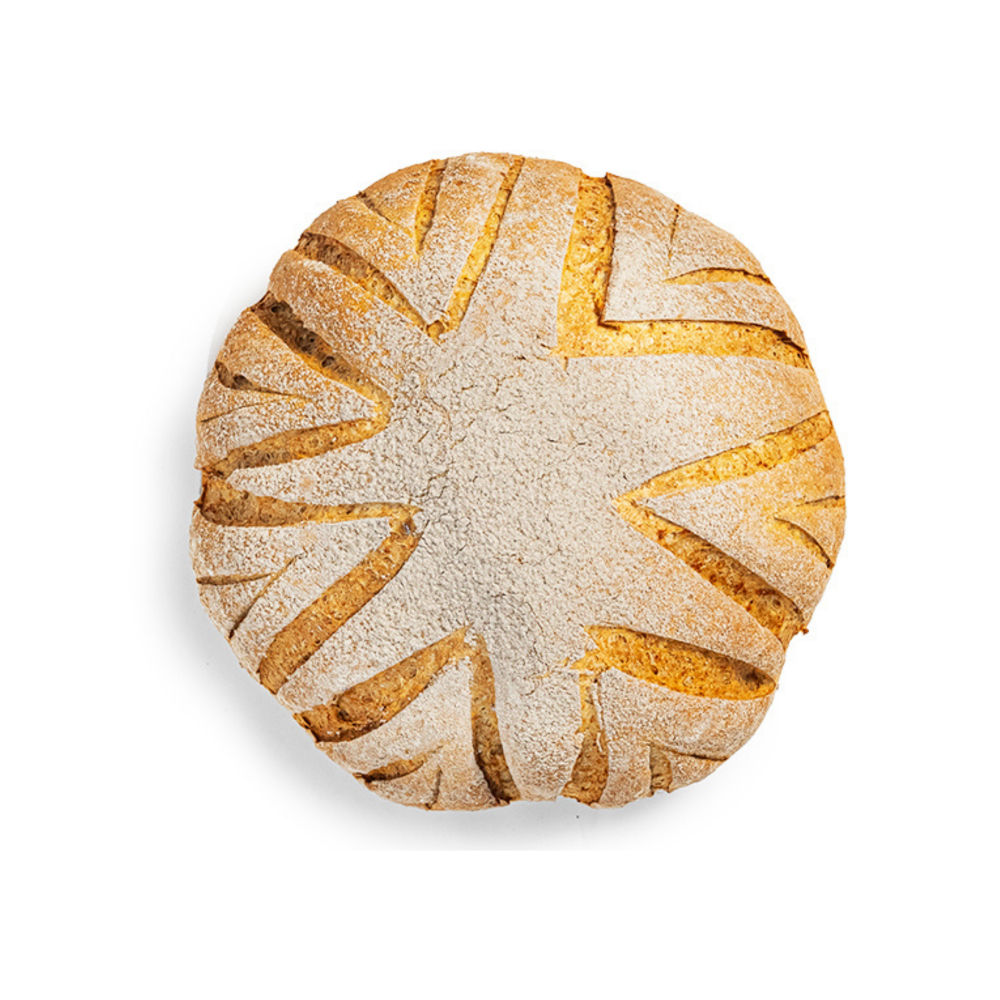 Pan elaborado a partir de la fermentación prolongada de levaduras naturales, logrando un sabor característico. Facilita la digestión y absorción de minerales (potasio, magnesio y zinc). Su consumo regular ayuda a la digestión y mejora la salud intestinal.