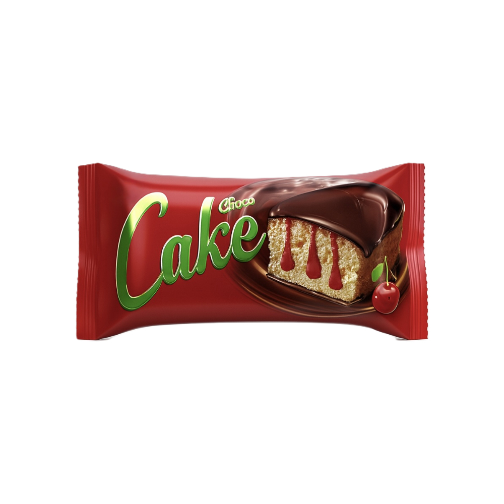Pastel de chocolate con relleno de cereza revestido con sucedáneo de chocolate con leche Choco Latey (50 g / 1.73 oz)