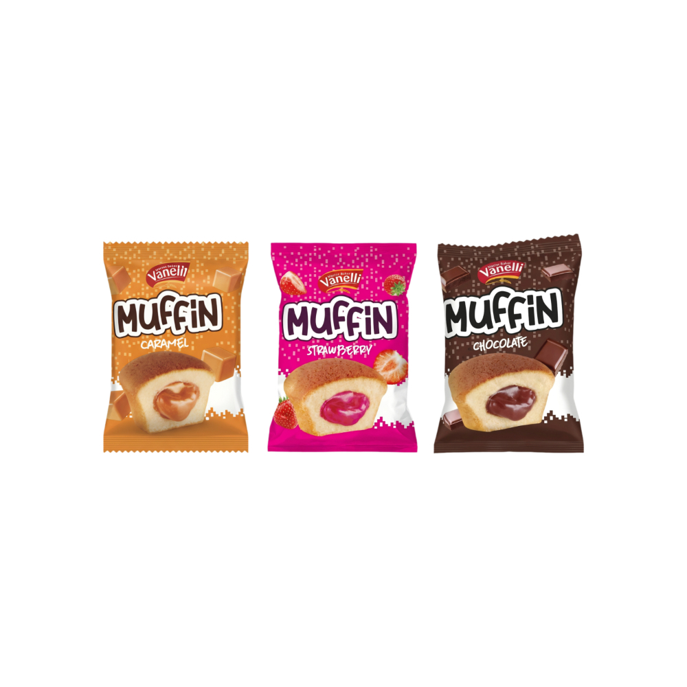 Pastelitos Muffin Vanelli rellenos de fresa, chocolate y caramelo