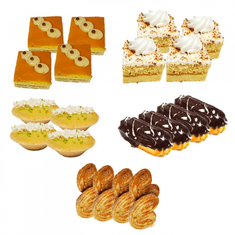Cardenal: Dulce compuesto por dos panetelas distintas (capuchino y panetela de vainilla) rellena y decorada con crema pastelera de vainilla.