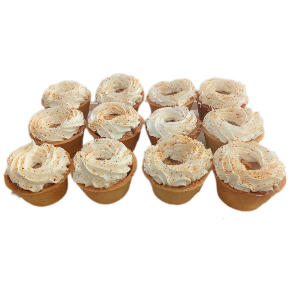 Doce tartaletas rellenas de crema de coco, con un punto medio en azúcar, adornadas con merengue.