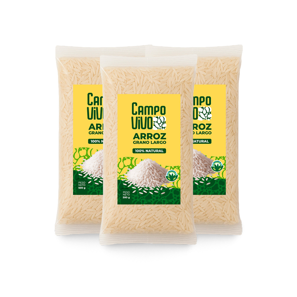 Arroz de grano largo Campo Vivo (3 x 500 g / 1.1 lb)