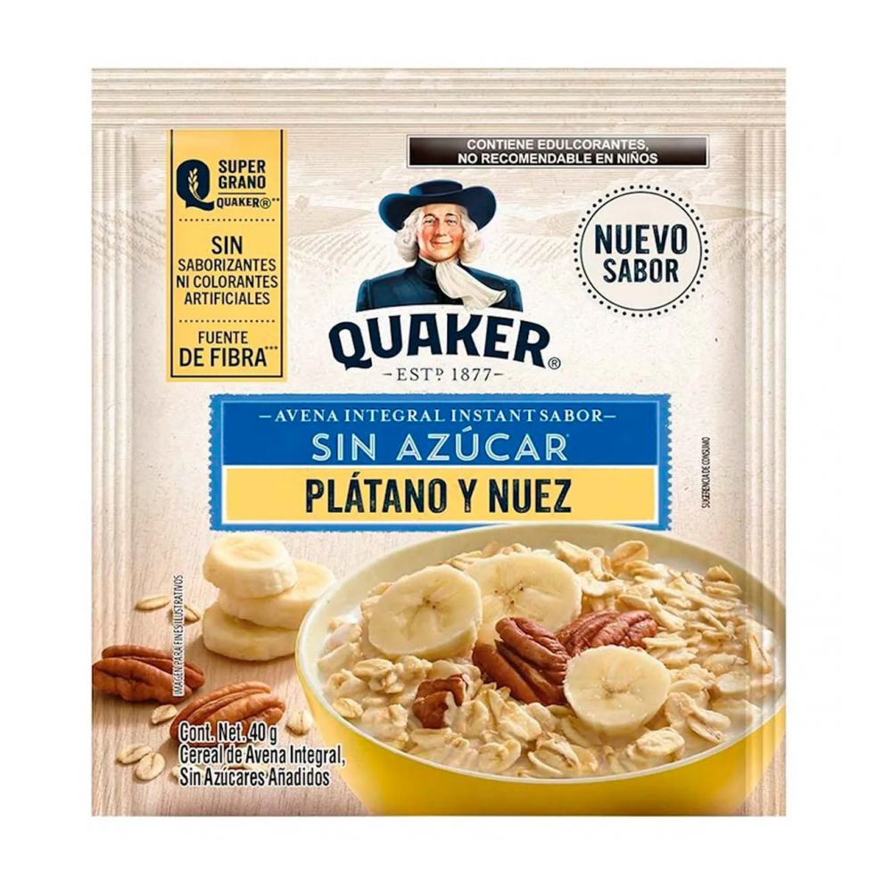 Avena integral sin azúcar sabor plátano y nuez Quaker (40 g / 1.41 oz)