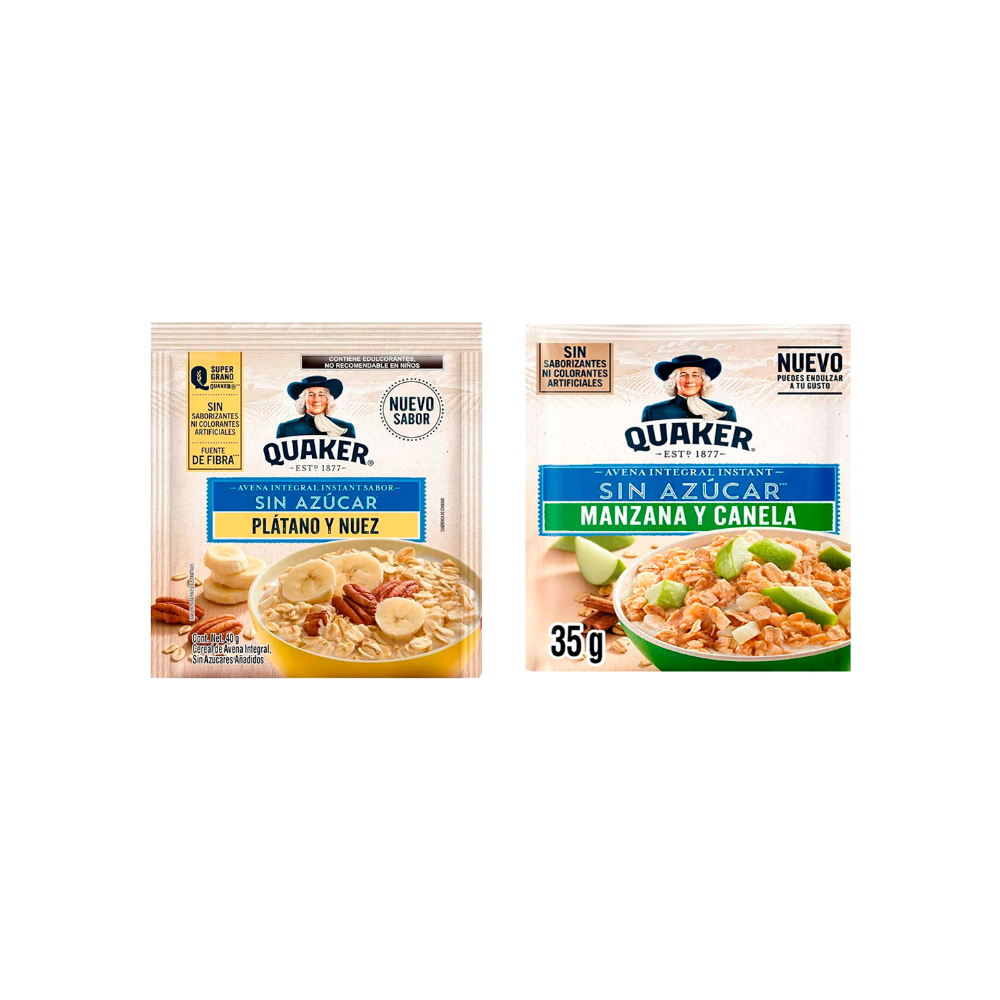combo de cereal para desayuno sin azúcar quaker sabor manzana y canela (35 g / 1.23 oz) + platano y nueces (35 g / 1.23 oz)