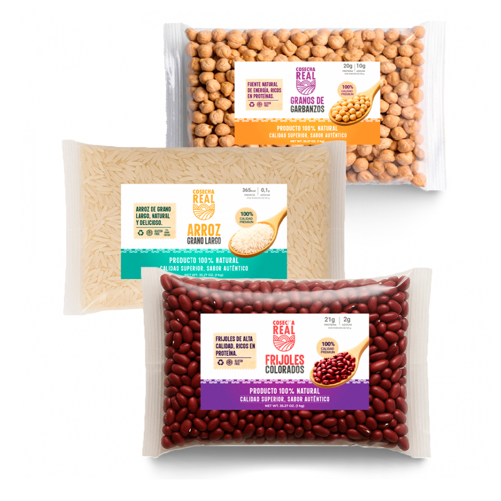 Combo de granos selectos Cosecha Real #18: Arroz de grano largo + Frijoles rojos + Garbanzos